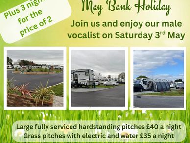 Touring pitches May Bank Holiday 3 nights for the price of 2 plus male vocalists in Sean’s Bar is great place to meet. Only a 15 minute drive to York Park and Ride.